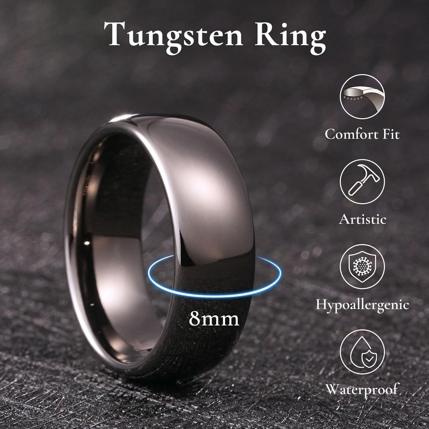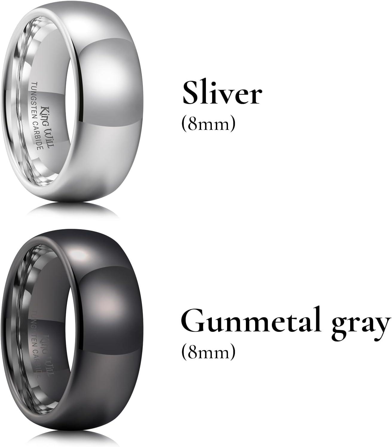 King Will Tungsten Carbide Wedding Band for Men Women Promise Rings for Couples Domed High Polish(8mm 2PC-Silver & Gunmetal)