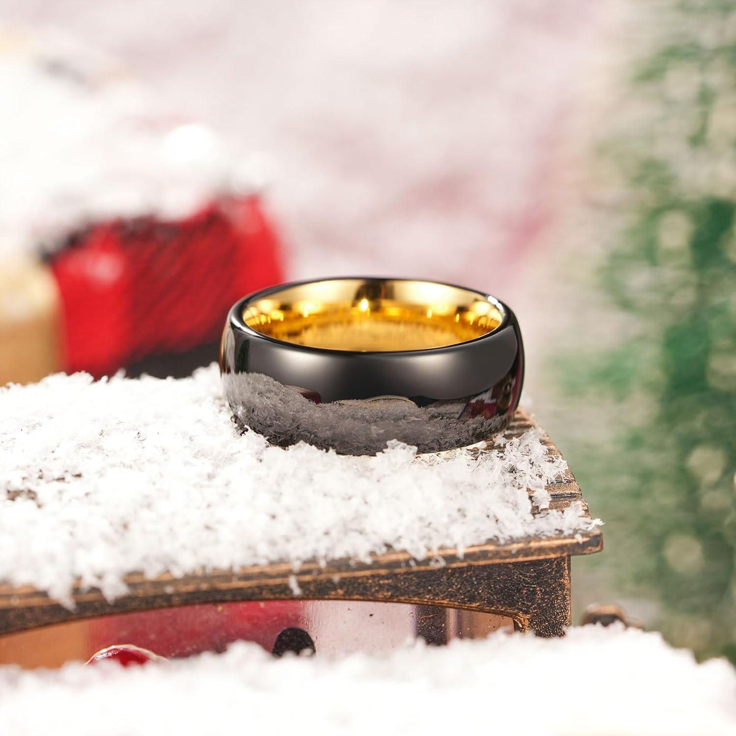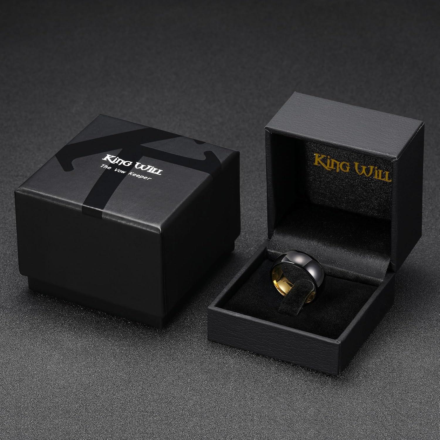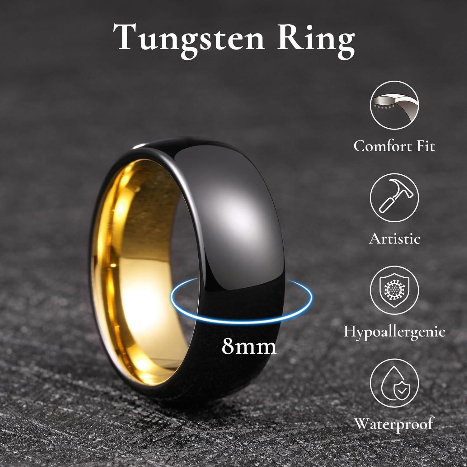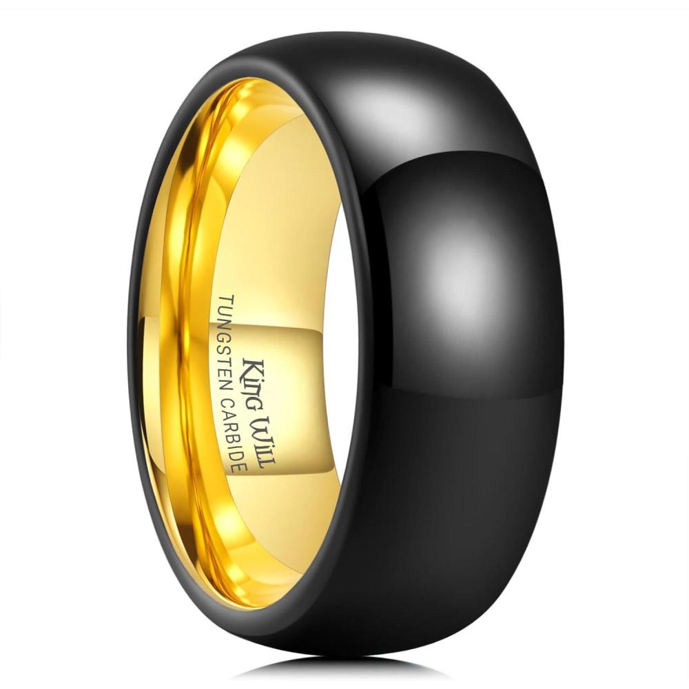 King Will Tungsten Carbide Wedding Band for Men Women Promise Rings for Couples Domed High Polish(8mm Black & Gold)