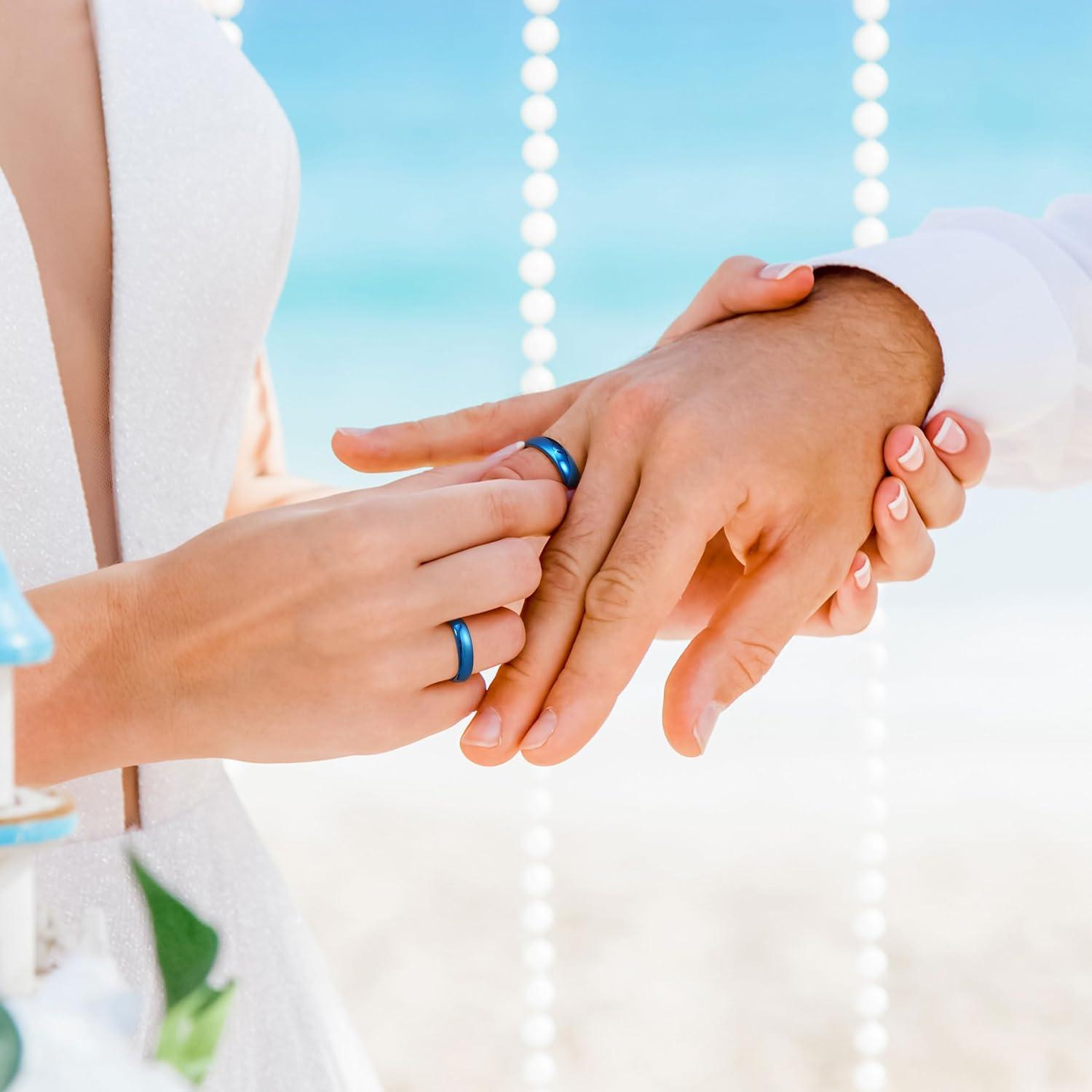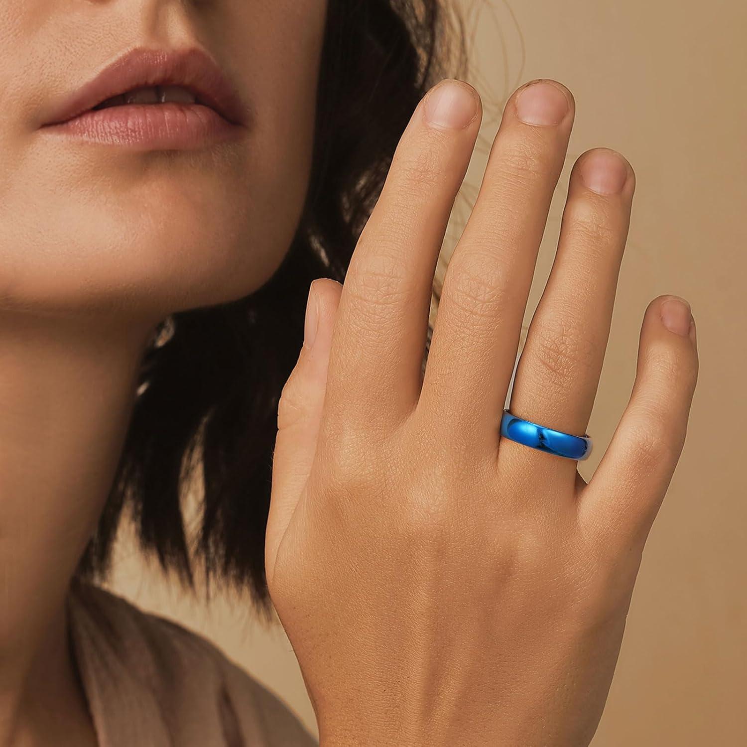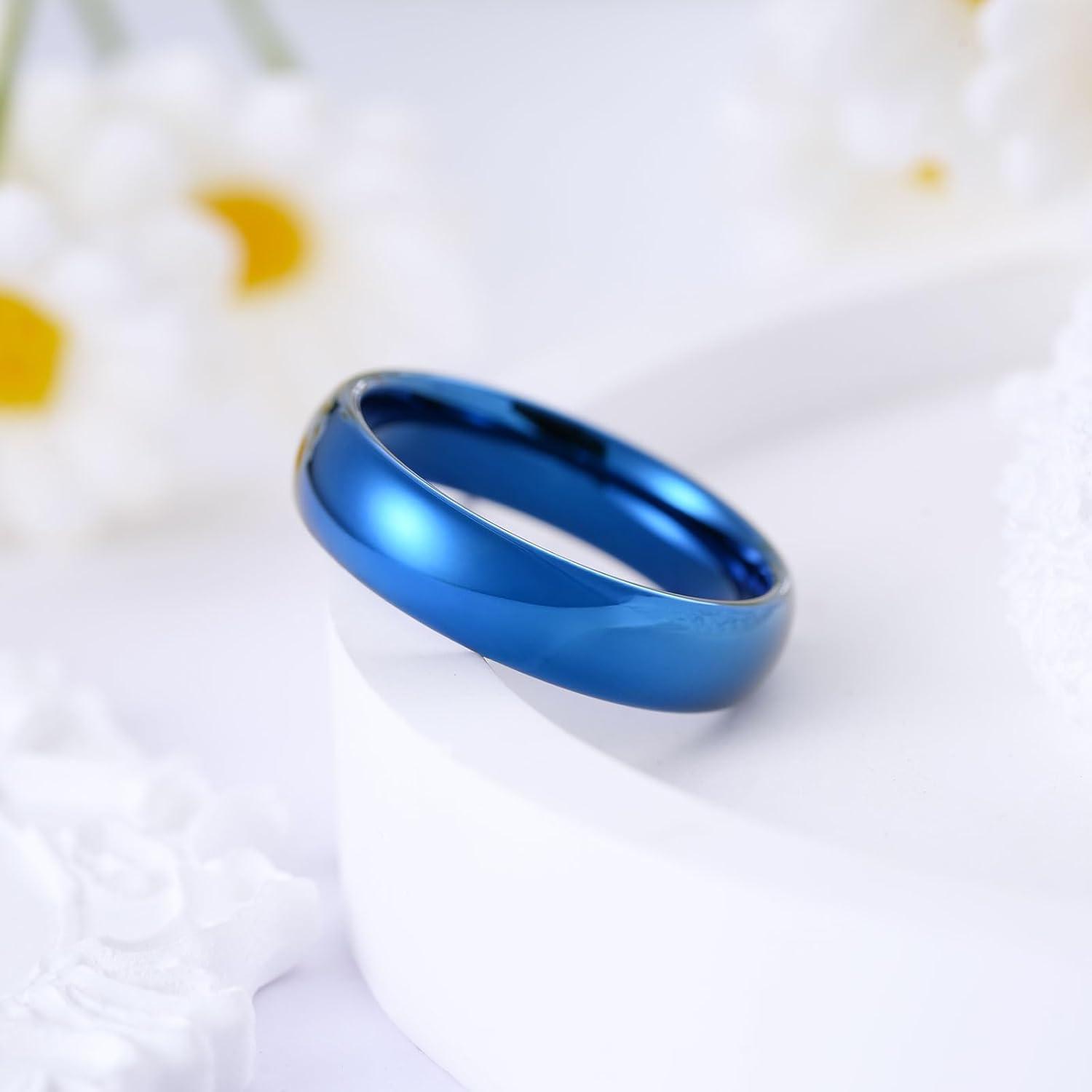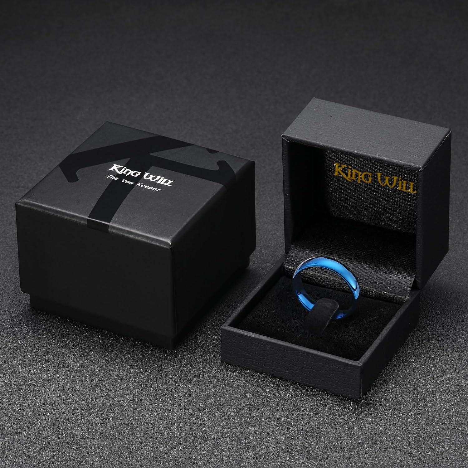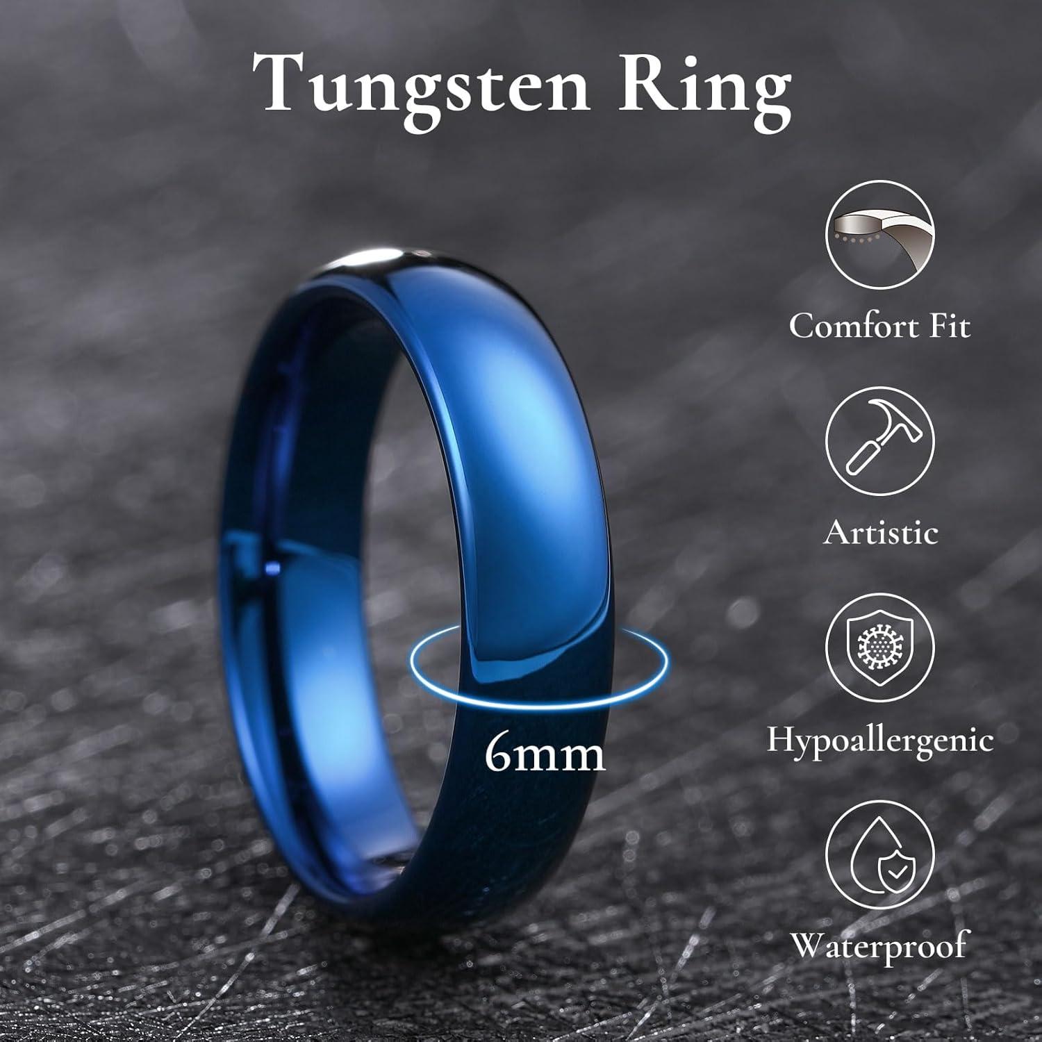 King Will Tungsten Carbide Wedding Band for Men Women Promise Rings for Couples Domed High Polish(Blue-6mm)