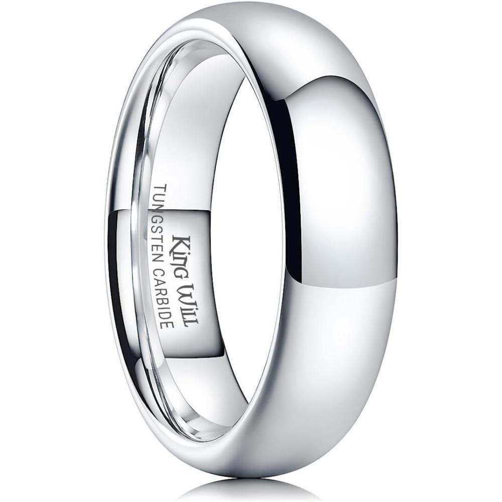King Will Tungsten Carbide Wedding Band for Men Women Promise Rings for Couples Domed High Polish(Silver-6mm)