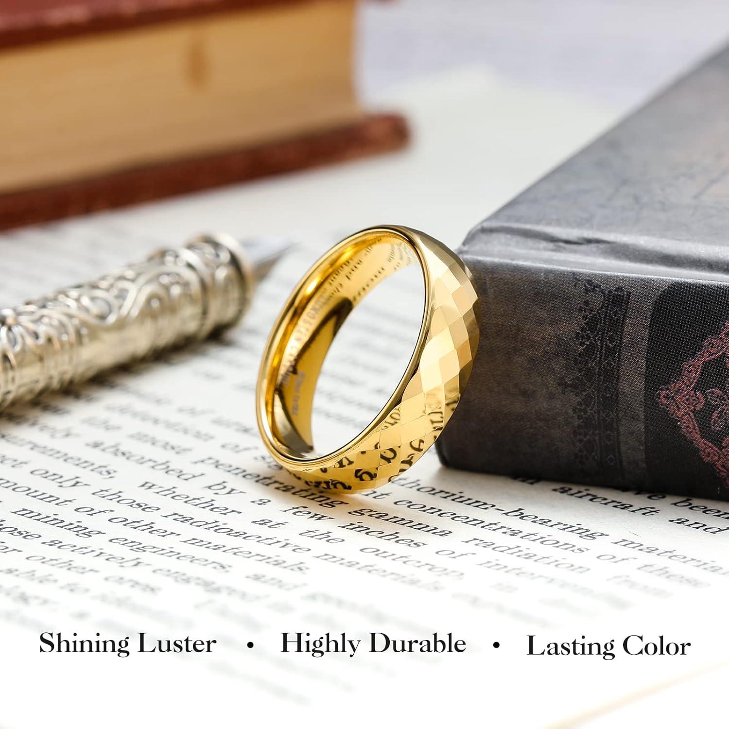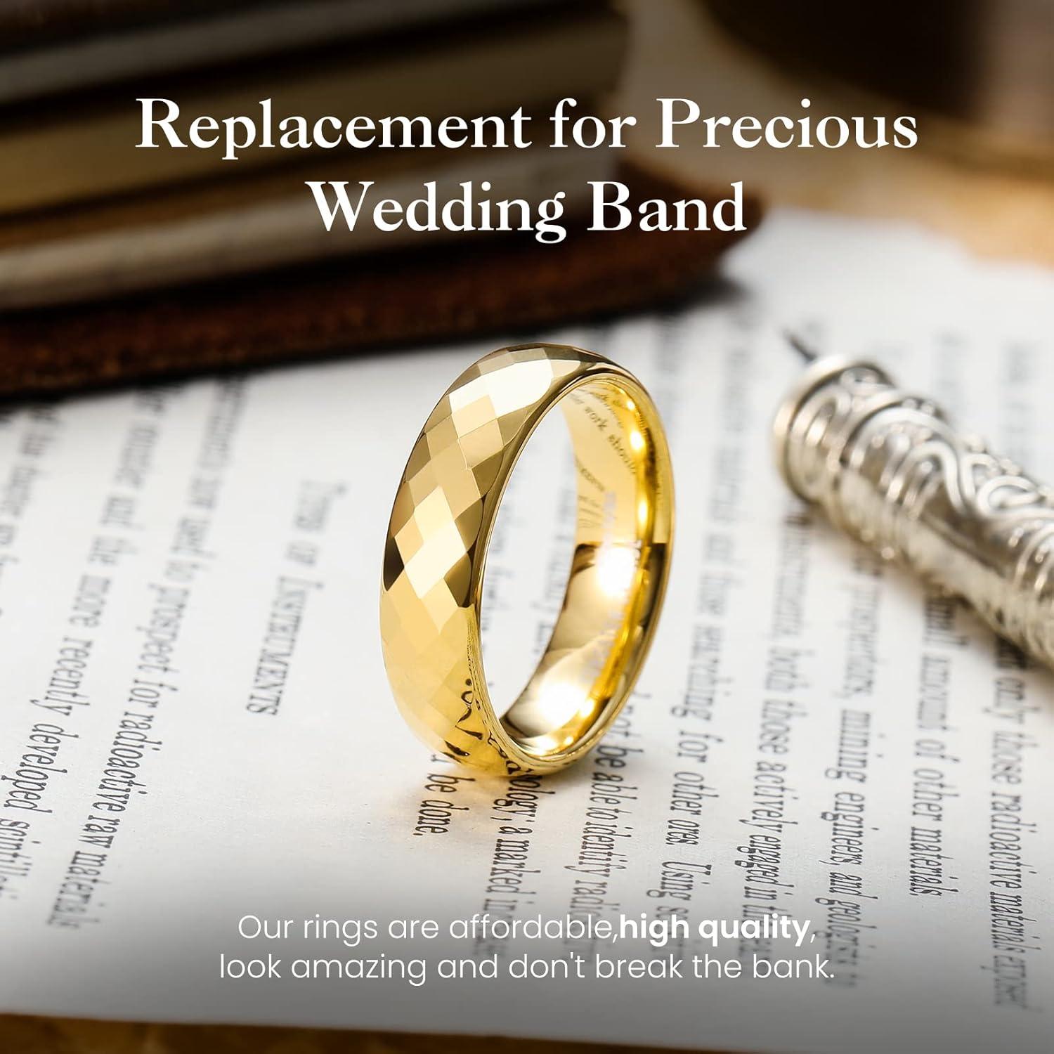 King Will Tungsten Carbide Wedding Ring for Men Women Promise Ring for Couple 2mm/4mm/6mm Black/Silver/Gold/Rose Gold Multi-faceted Shining Luster High Polished Wedding Band Comfort Fit(Gold-6mm)
