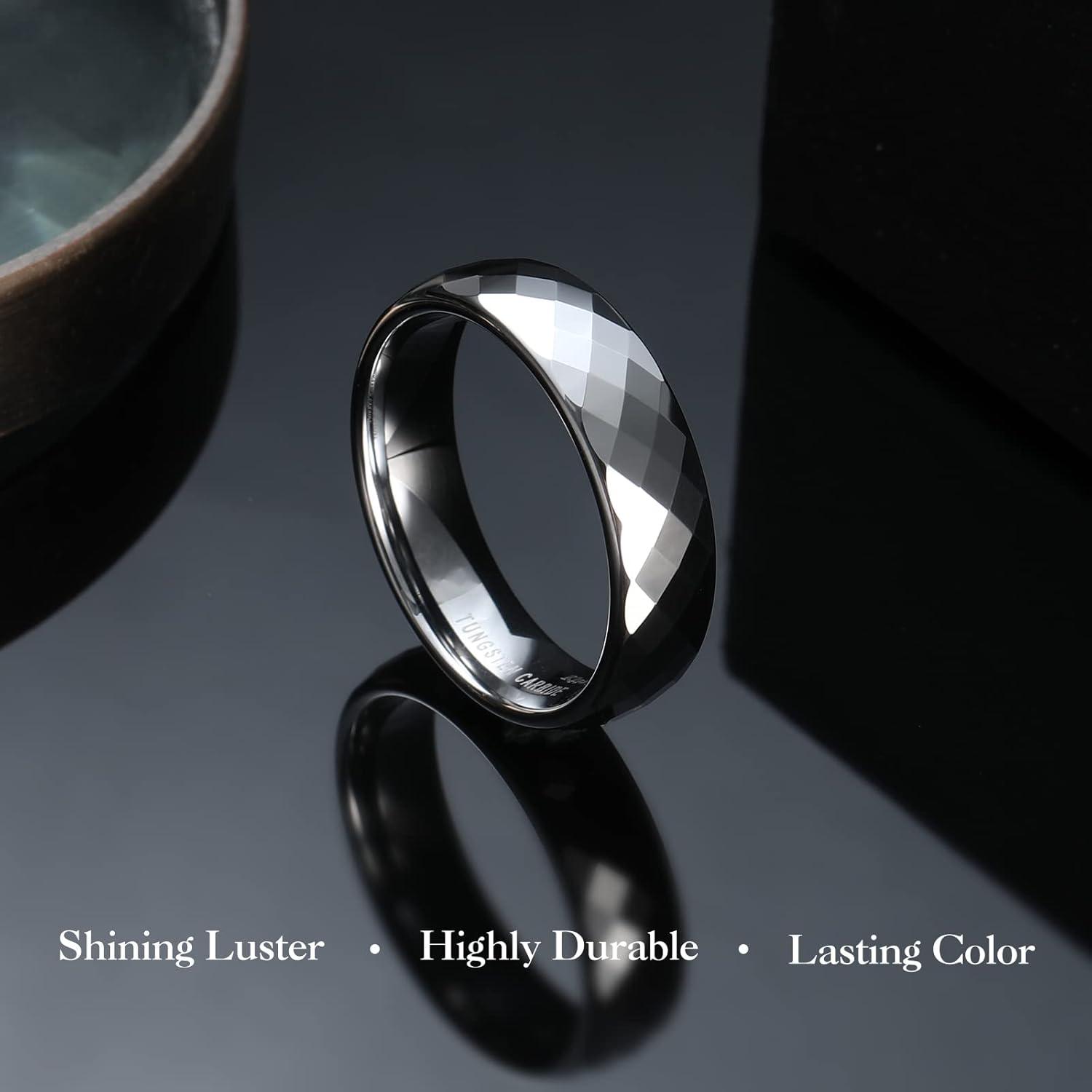 King Will Tungsten Carbide Wedding Ring for Men Women Promise Ring for Couple 2mm/4mm/6mm Black/Silver/Gold/Rose Gold Multi-faceted Shining Luster High Polished Wedding Band Comfort Fit(Silver-6mm)
