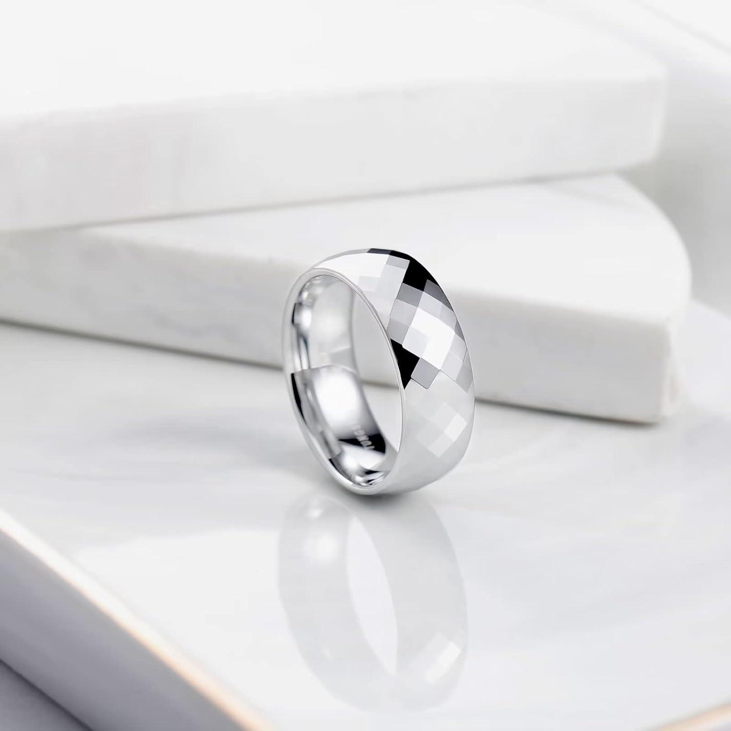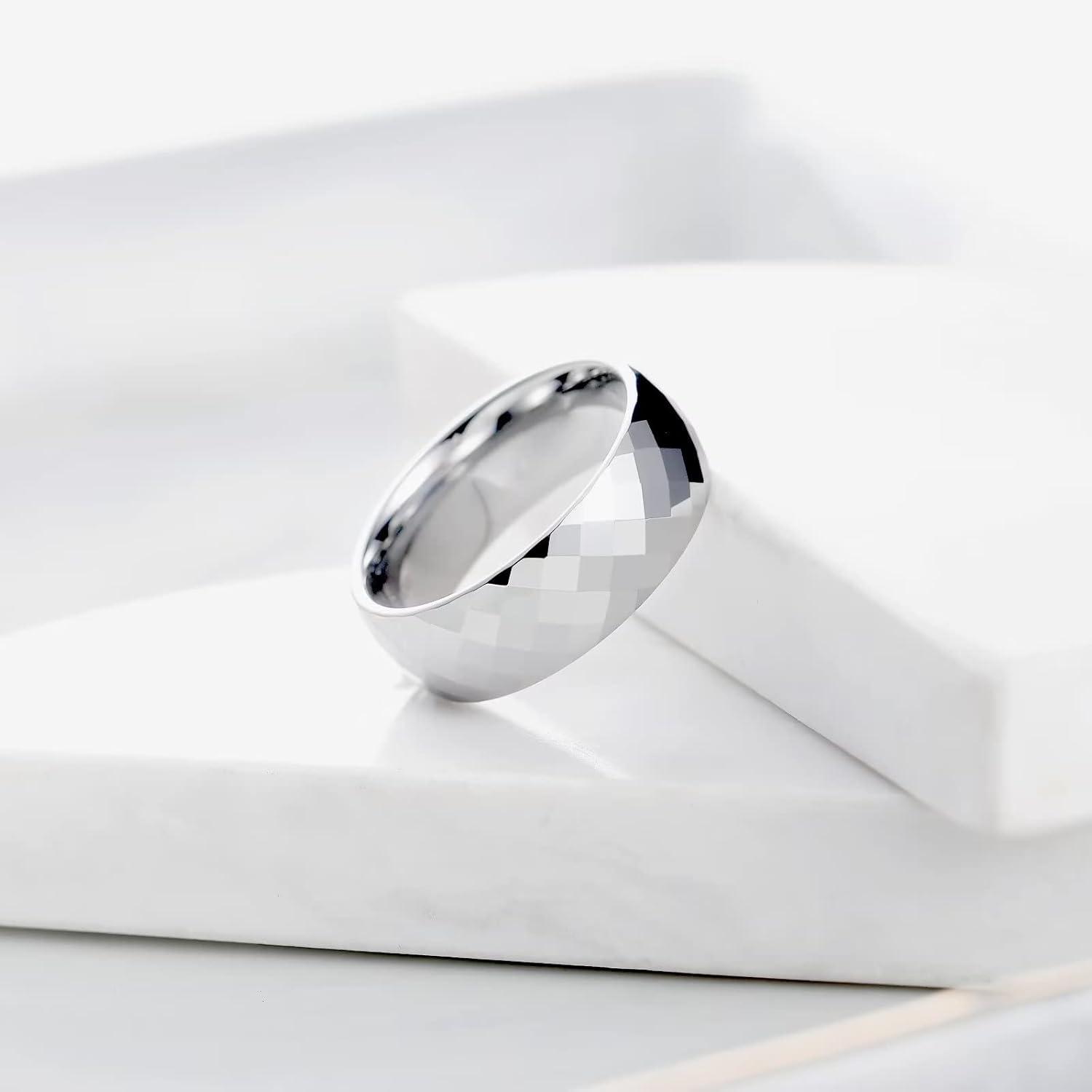 King Will Tungsten Carbide Wedding Ring for Men Women Promise Ring for Couple 2mm/4mm/6mm Black/Silver/Gold/Rose Gold Multi-faceted Shining Luster High Polished Wedding Band Comfort Fit(Silver 8mm)