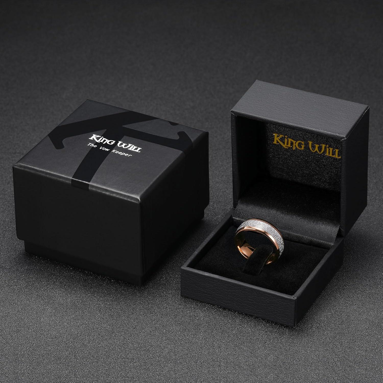 • King Will Classic Mens 8mm Silver/Black/Gold/Rose Gold Tungsten Carbide Wedding Band Brick Pattern Groove Center Surface Brushed Finish Comfort Fit(A-Black & Rose Gold)