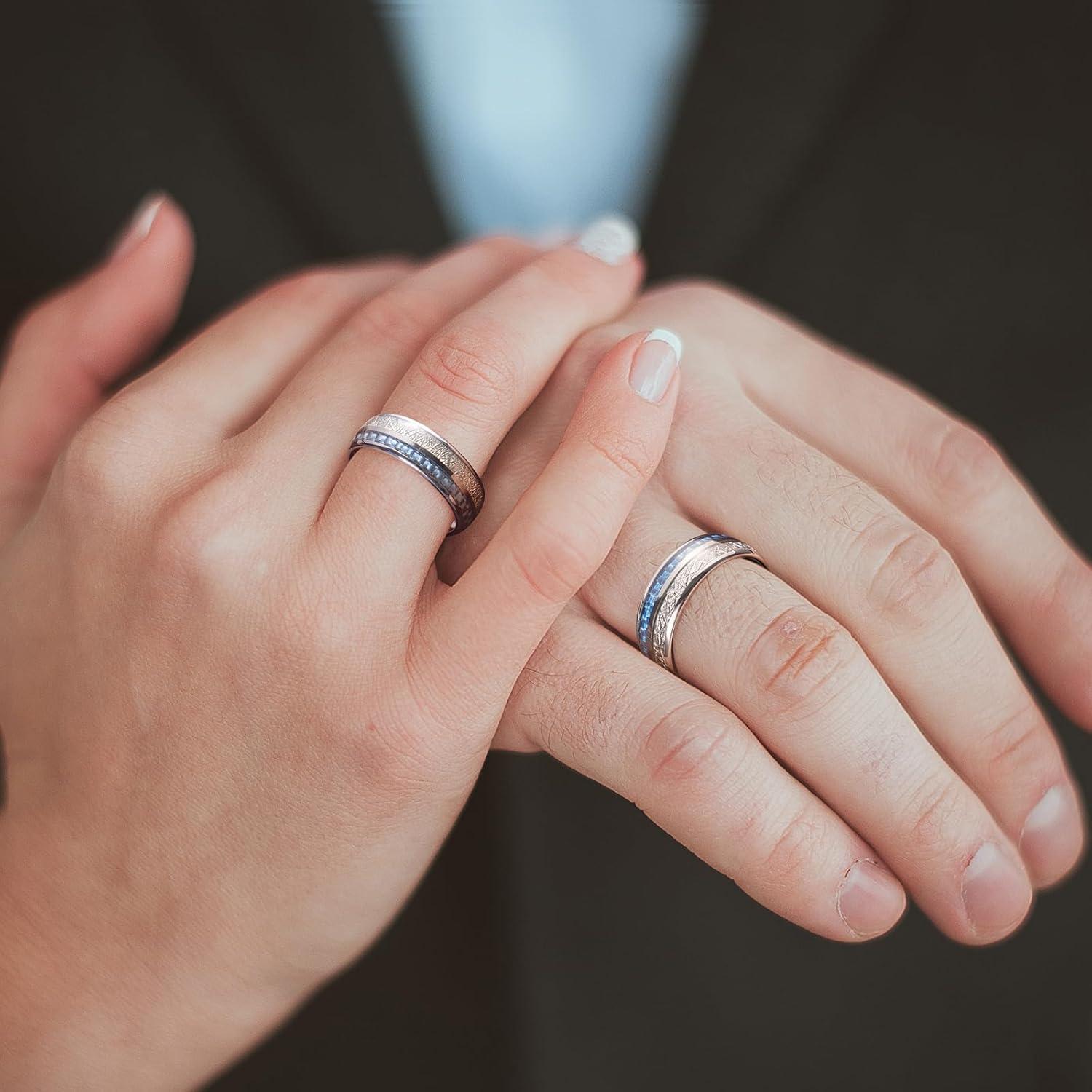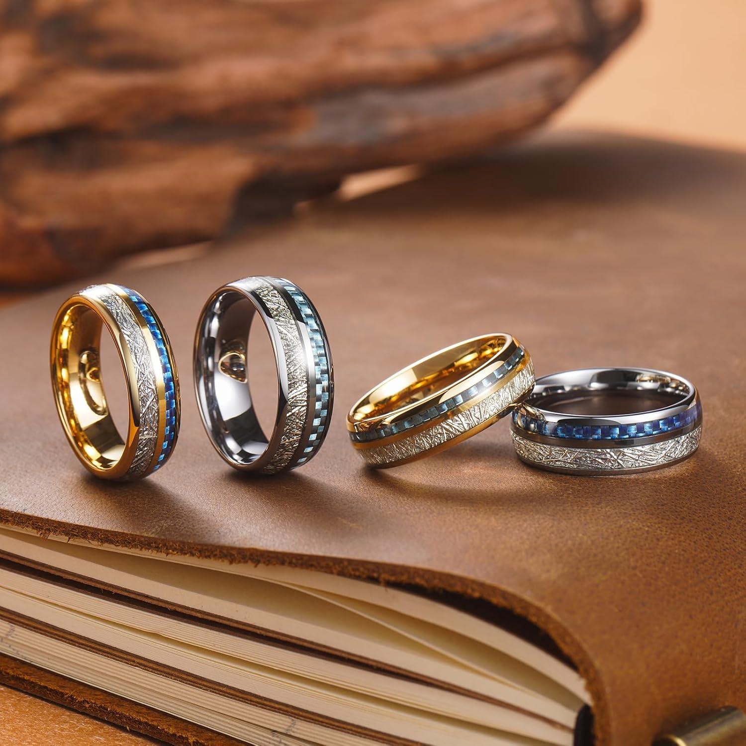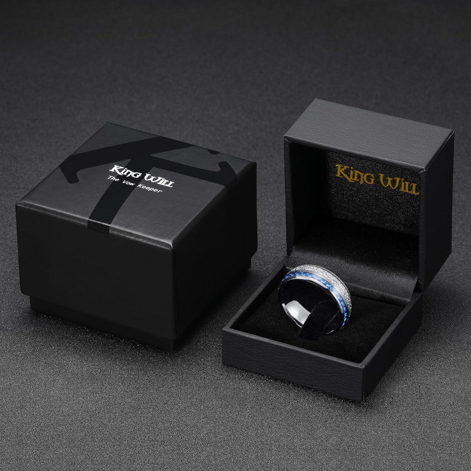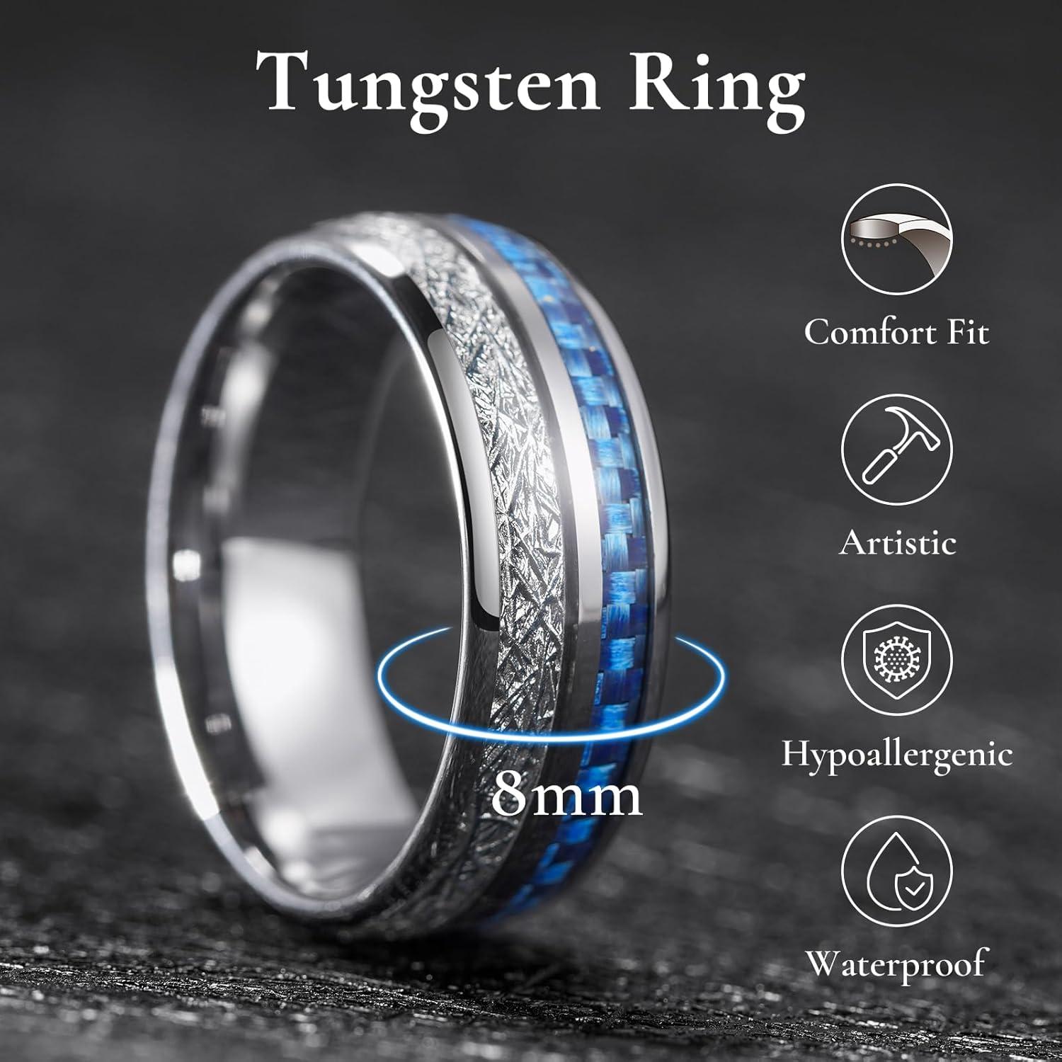 King Will Tungsten Rings for Men Meteorite Carbon Fiber Wood Inlay Mens Wedding Engagement Band Domed Polished(8mm Silver & Medium Blue Carbon Fiber)