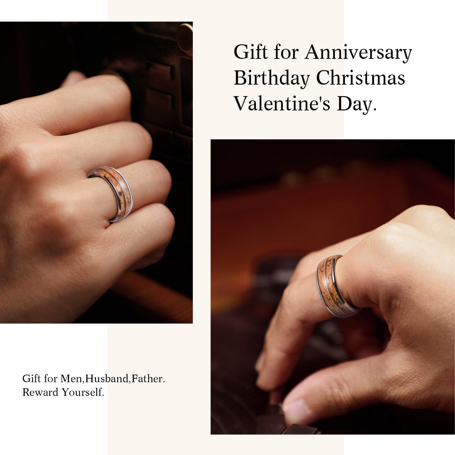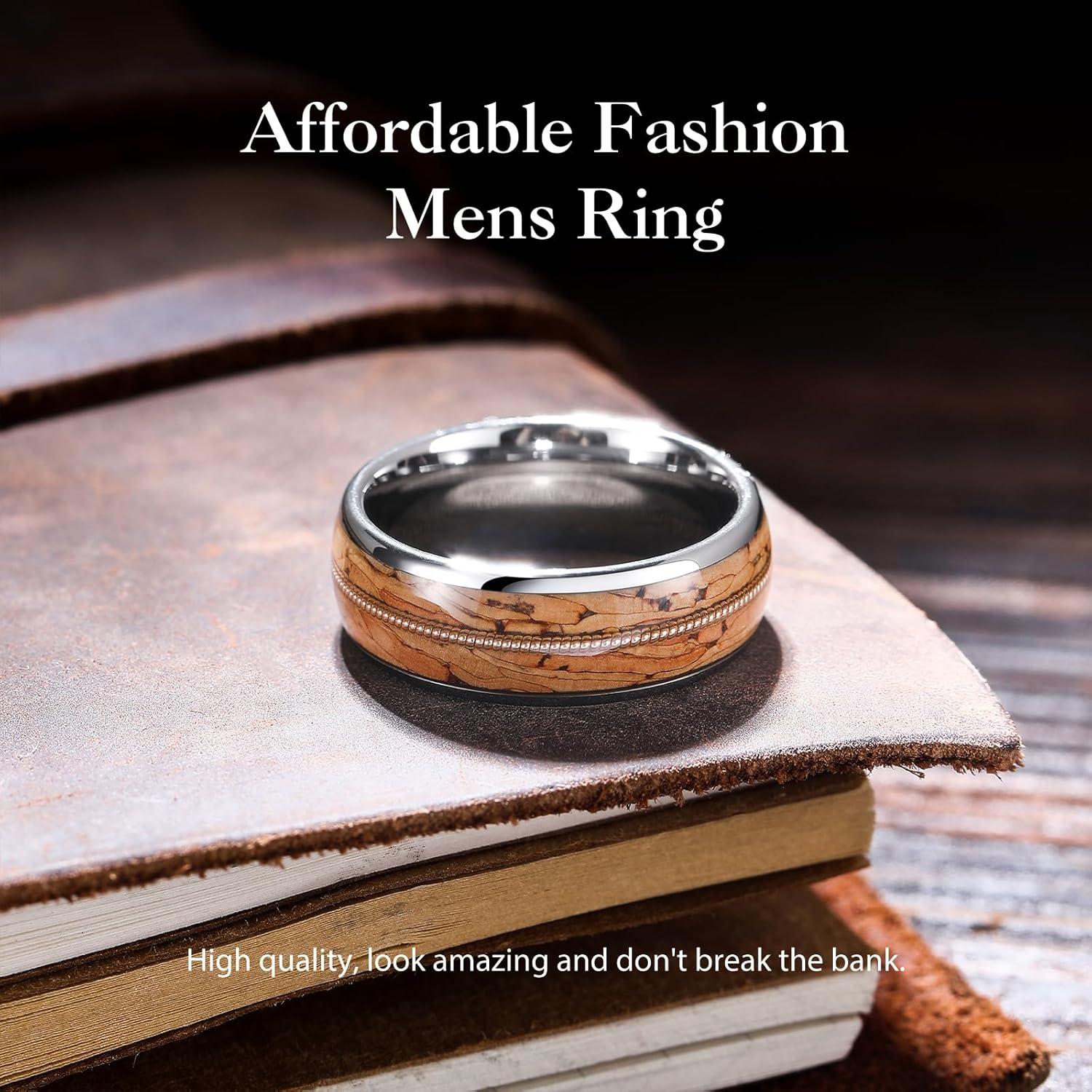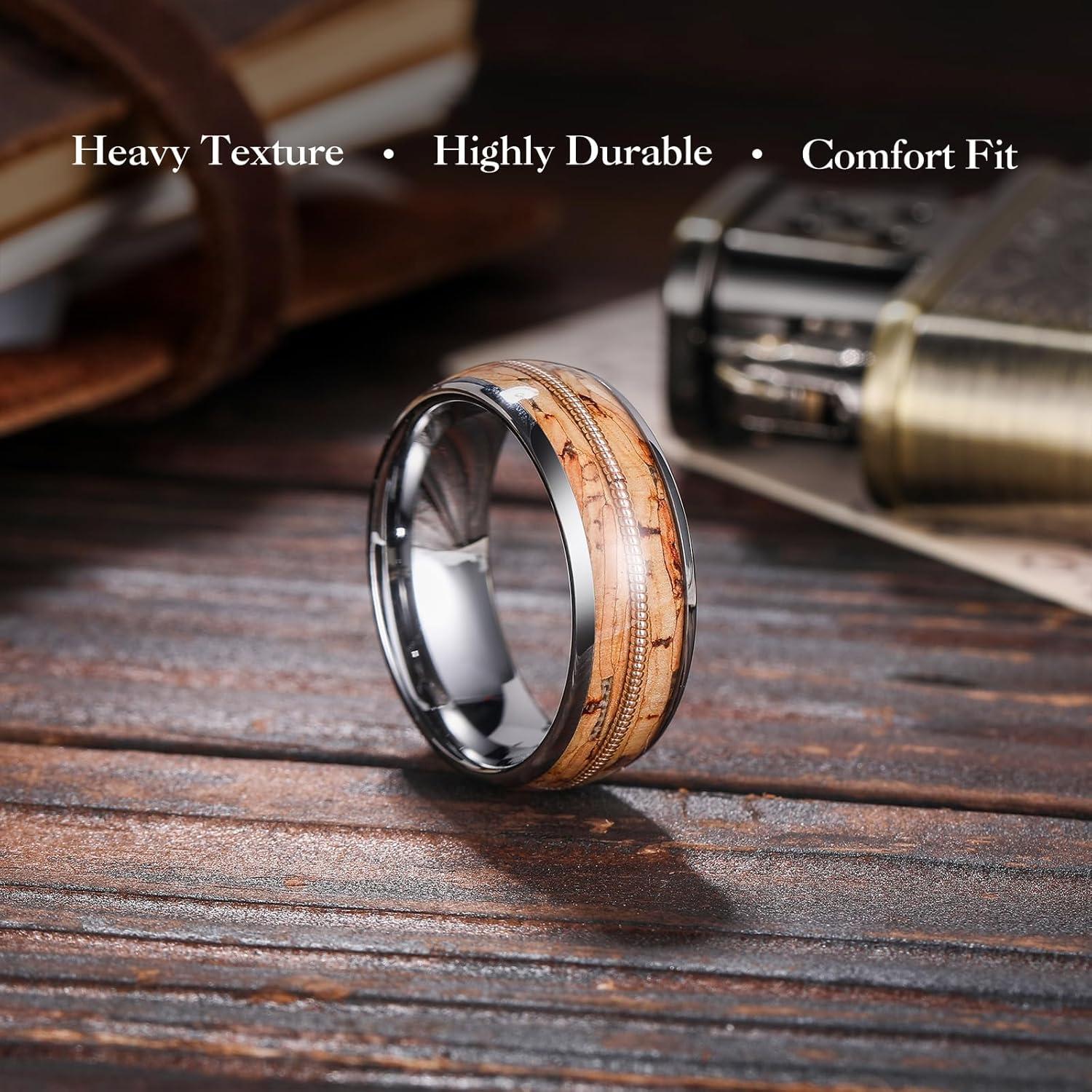 King Will Tungsten Wedding Band for Men 8mm Domed Ring Arrow/Guitar String Inlay Promise Ring for Him Comfort Fit(A-Brown)