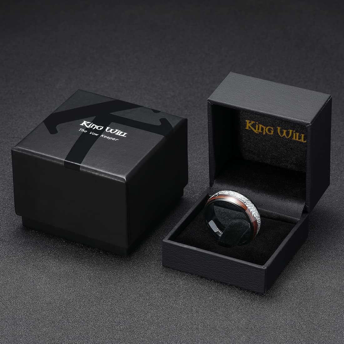 King Will Tungsten Wedding Band for Men 8mm Domed Ring Arrow/Guitar String Inlay Promise Ring for Him Comfort Fit(B-Black)
