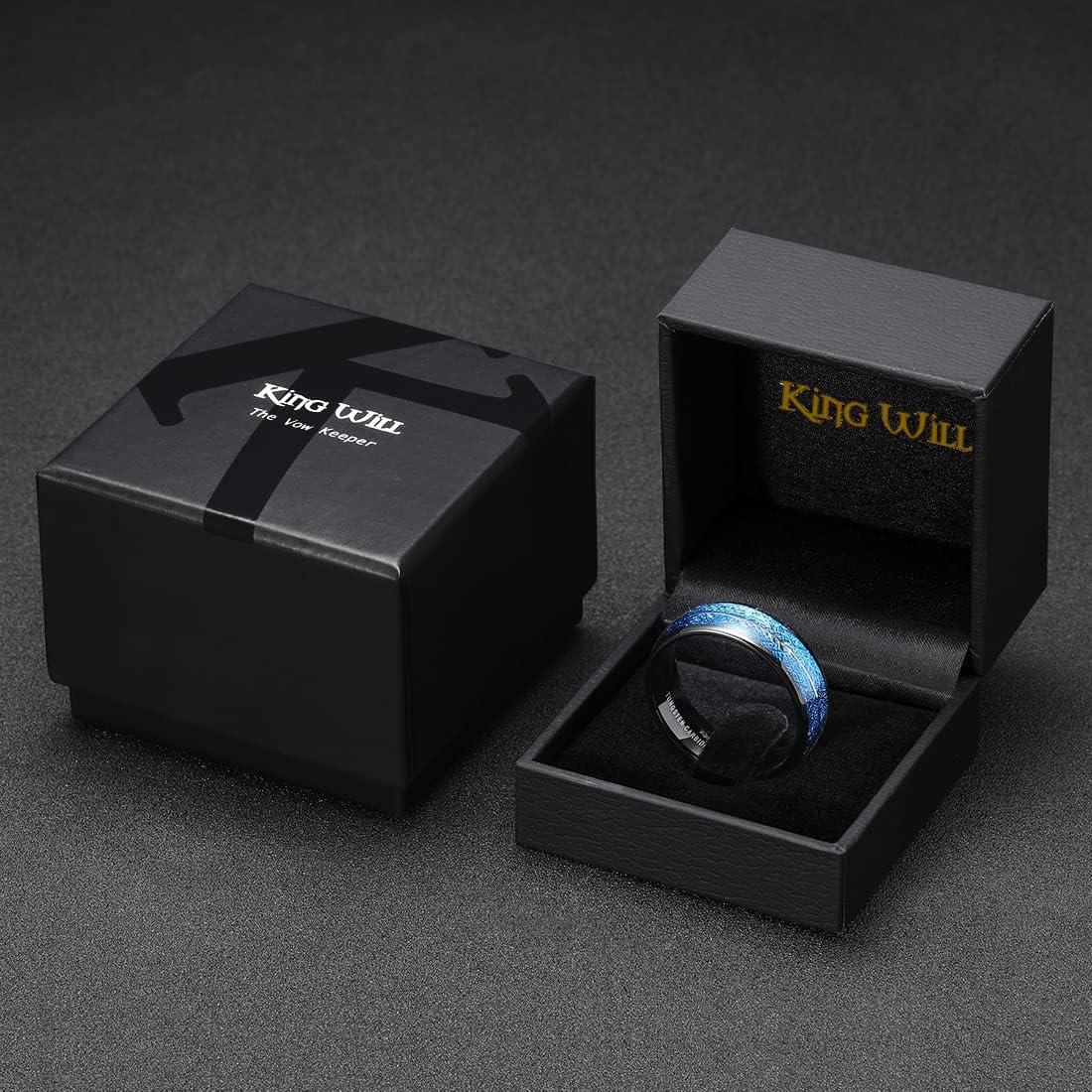 King Will Tungsten Wedding Band for Men 8mm Domed Ring Arrow/Guitar String Inlay Promise Ring for Him Comfort Fit(B-Blue)
