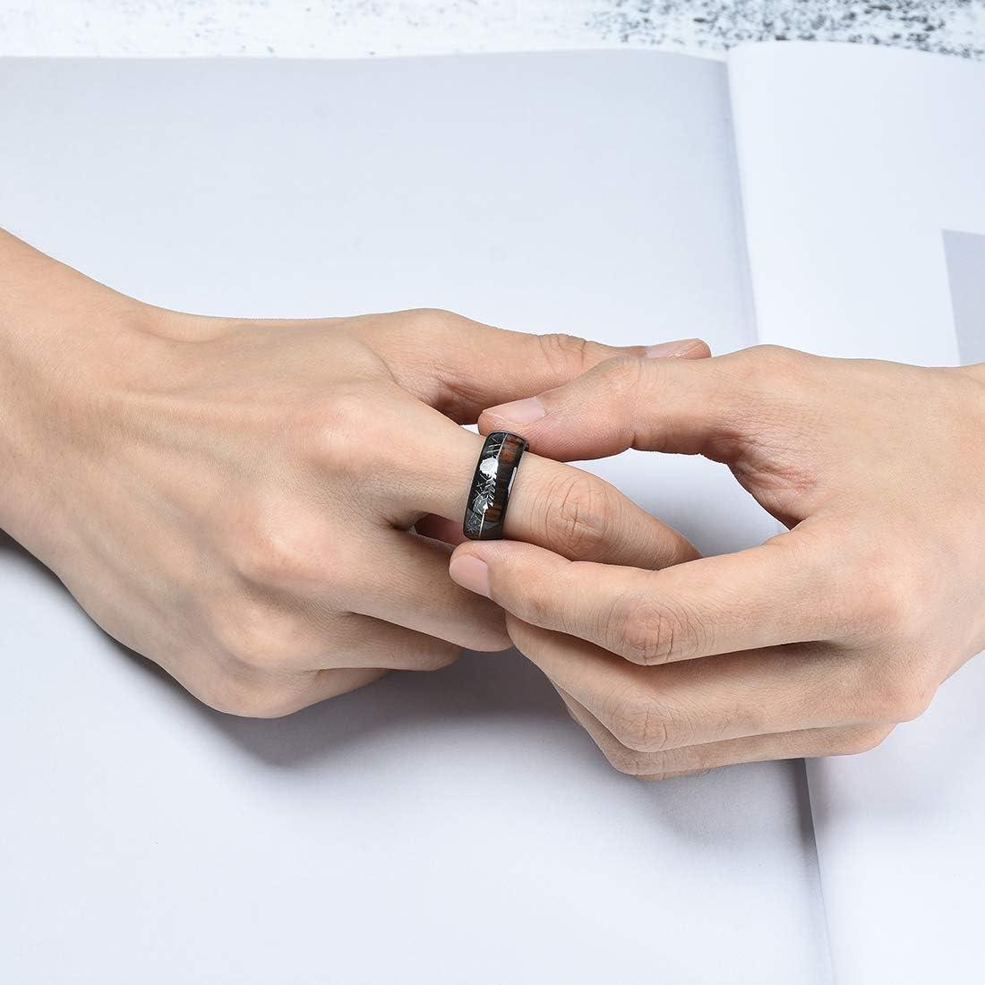 King Will Tungsten Wedding Band for Men 8mm Domed Ring Arrow/Guitar String Inlay Promise Ring for Him Comfort Fit(B-wood-meteorite)