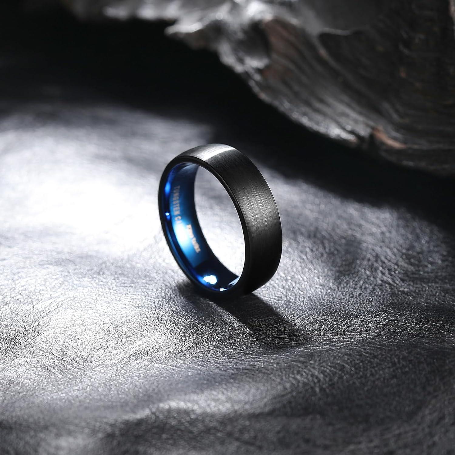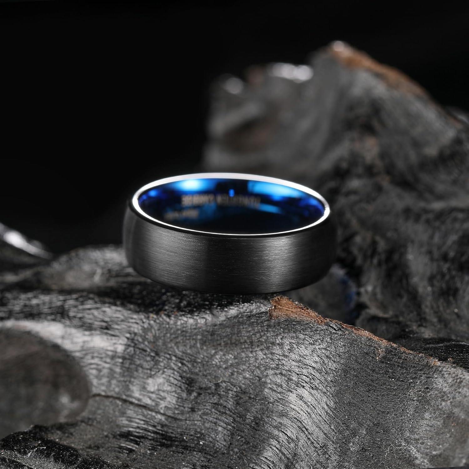 imageKing Will Wedding Band for Men Women 24678mm Domed Matte Brushed Tungsten Carbide Rings SolidDual Color Engagement Rings Comfort FitBlackBlue5mm