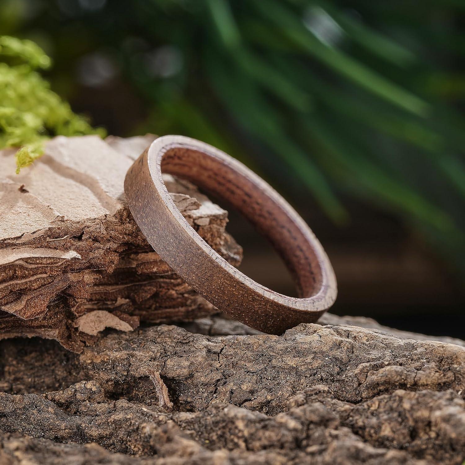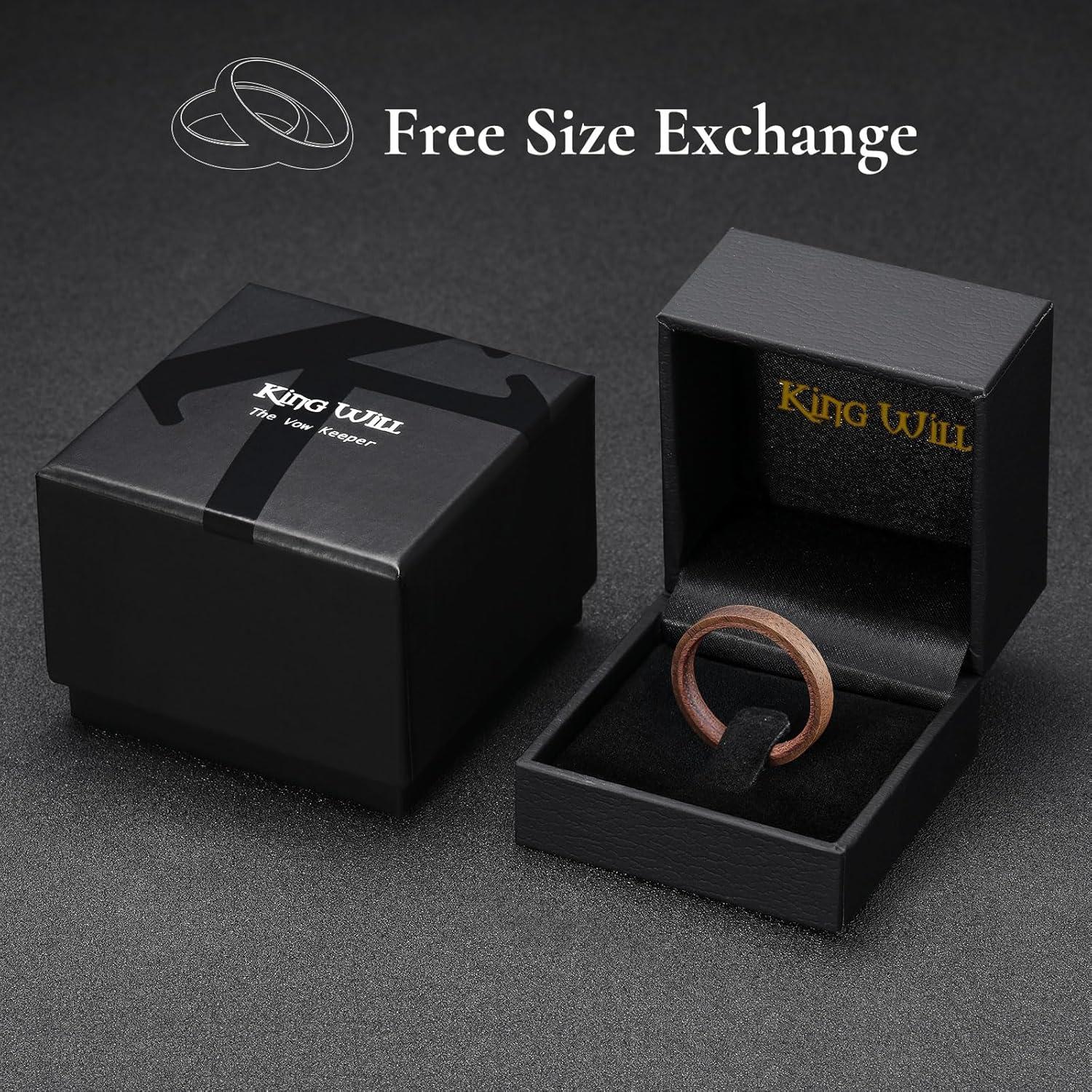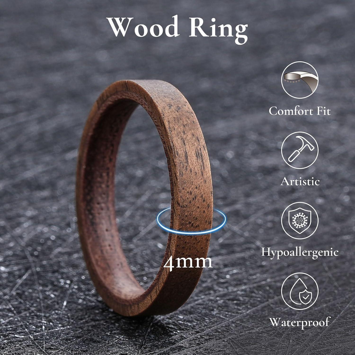 King Will Wooden Wedding Band for Men Women- 4-12mm Width in Black/Brown Wood Wedding Ring Domed Style, Comfort Fit and Promise Ring Size 8-13(Rosewood & Acacia Wood-4mm)
