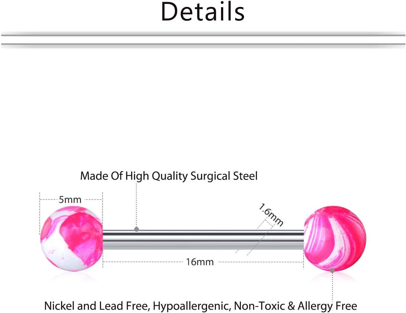 Mayhoop 14G 36Pcs Stainless Steel Nipple Rings Tongue Rings Straight Barbell Bars Piercing 14mm 16mm 18mm in Length for Women Men(Light)