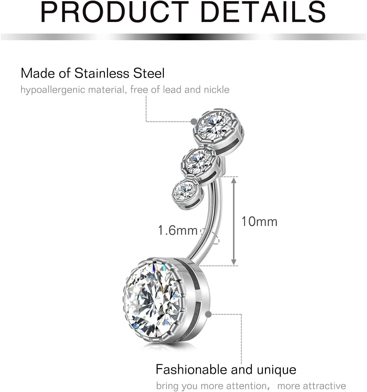 Mayhoop 14G Belly Button Rings 316L Surgical Stainless Steel Dangle Clicker Belly Ring Dangling Piercing Jewelry With Heart Flower Butterfly Silver Gold Tone For Women(7Pcs-silver)