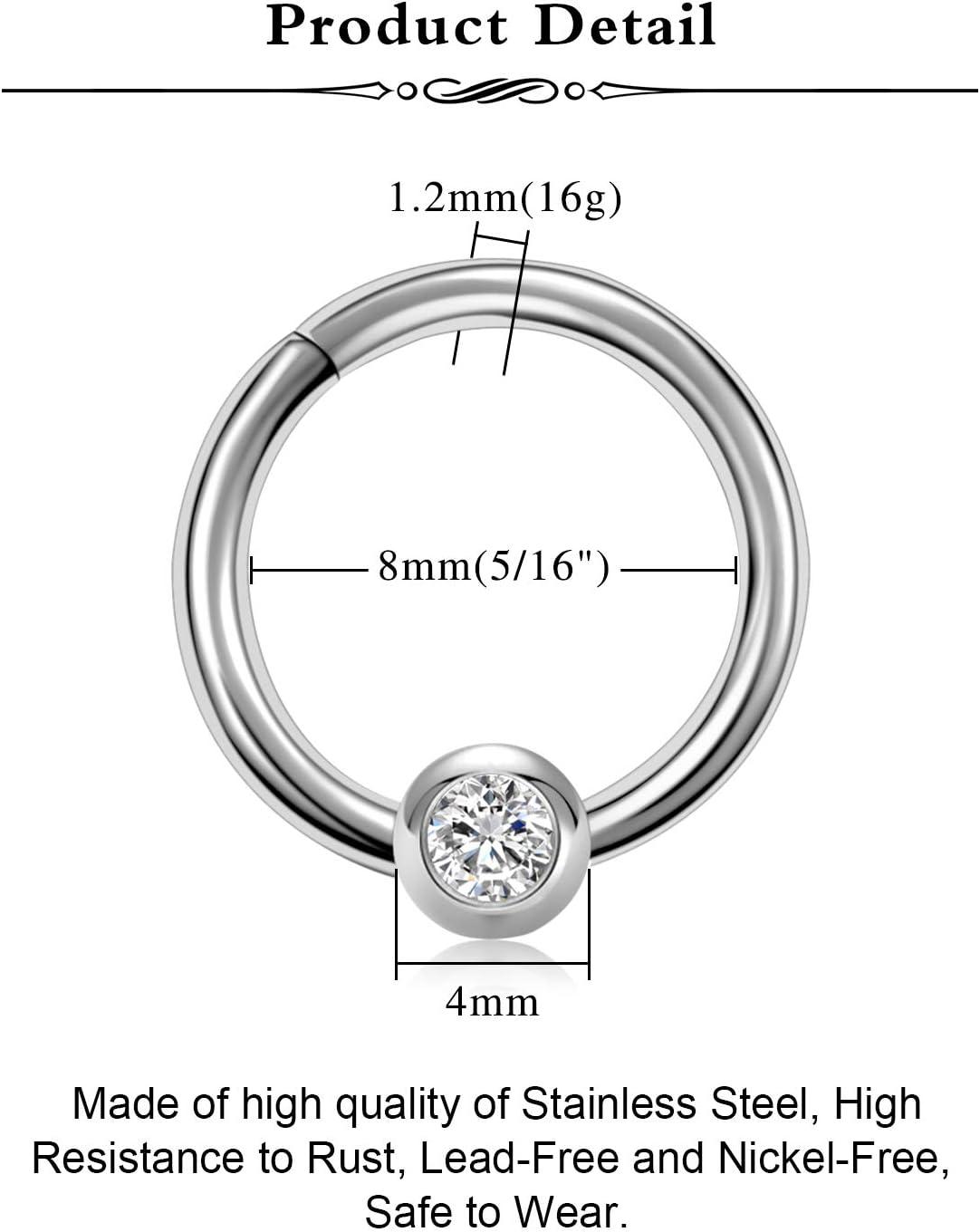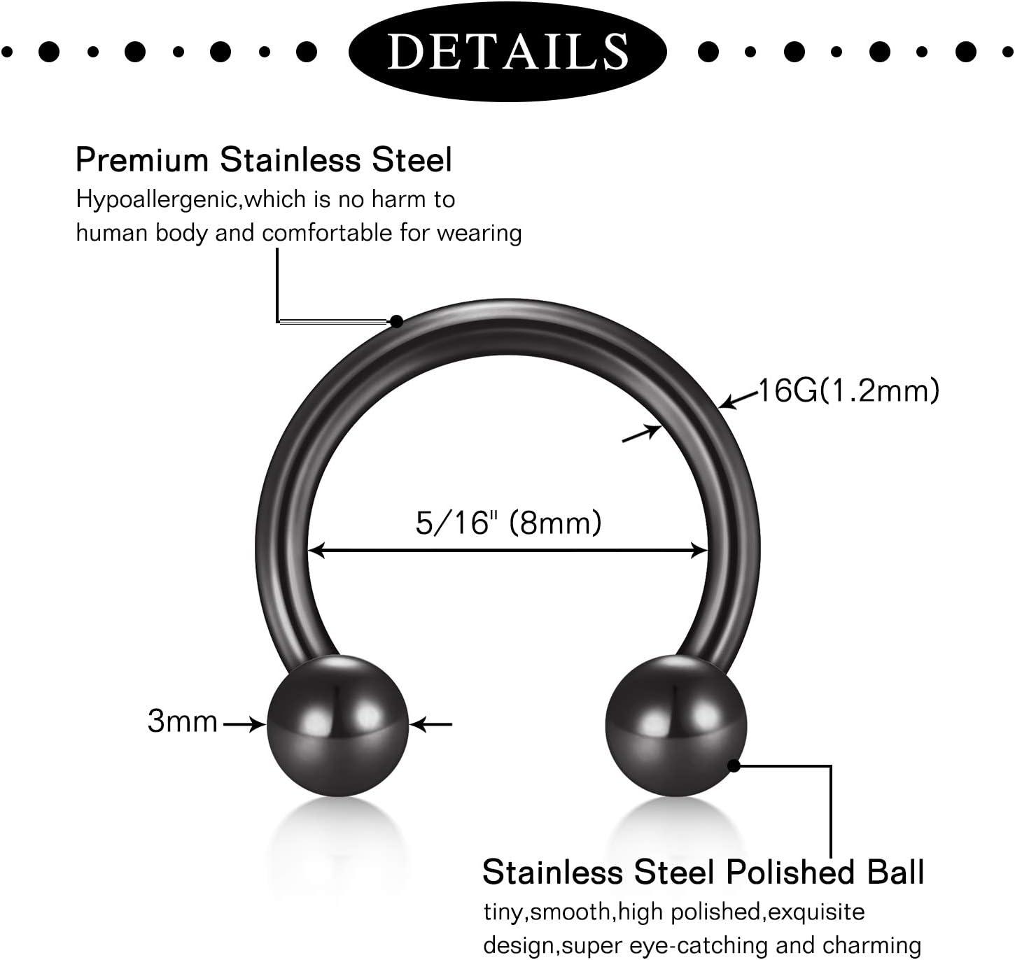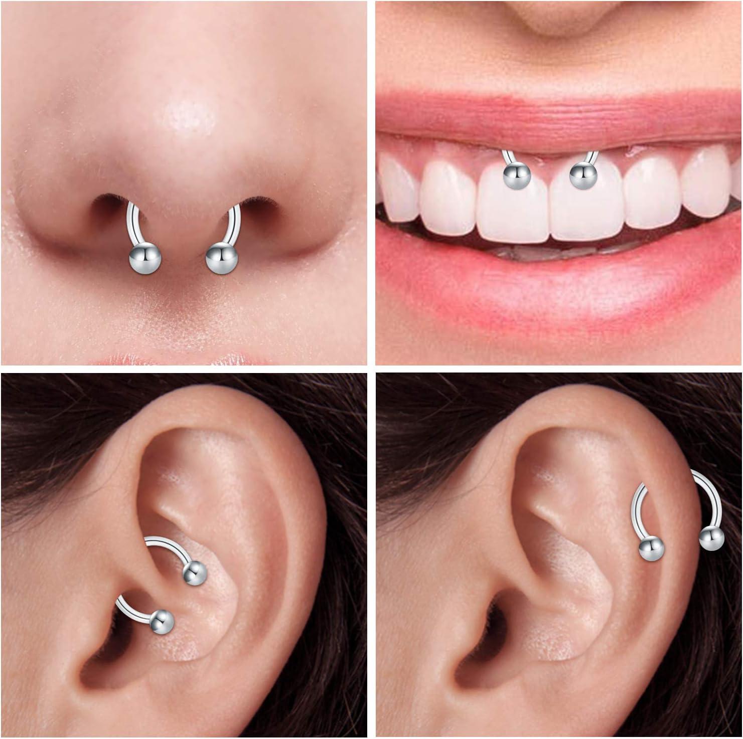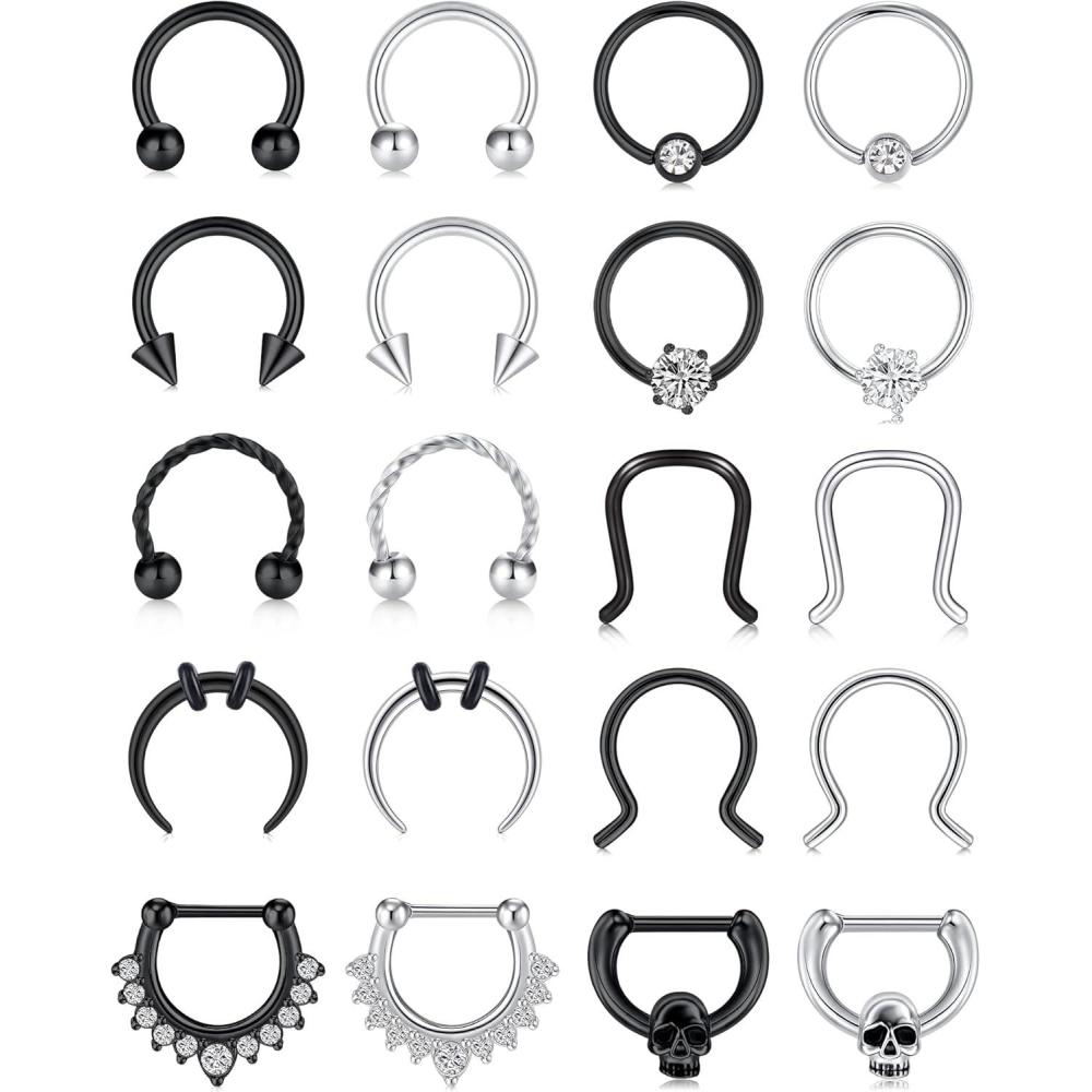Mayhoop 16G 20Pcs Surgical Steel Nose Rings Septum Rings Captive Bead Rings Horseshoe Piercing Jewelry Cartilage Helix Daith Tragus Earring Hoop Lip Hinged Seamless Nose Hoop Ring for Women Men(Silver+Black)