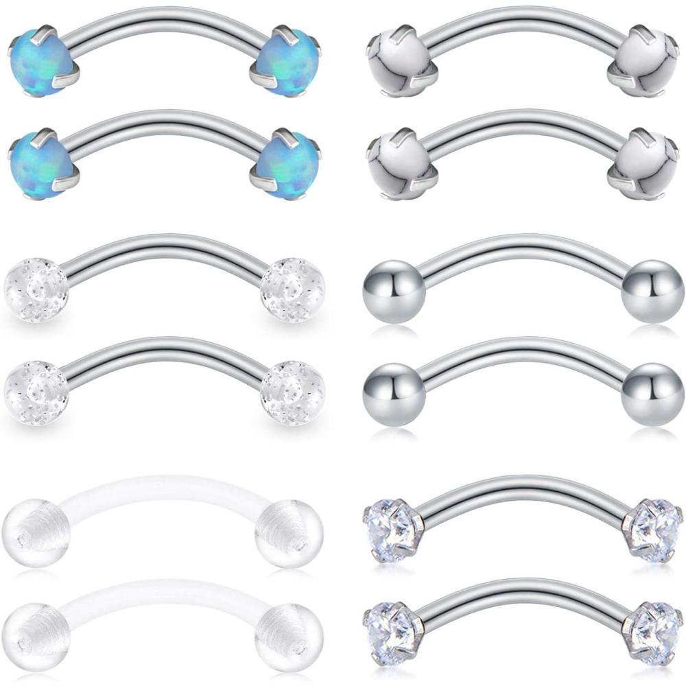 Mayhoop 16G Stainless Steel Daith Rook Earring 8mm 10mm Curved Barbell Eyebrow Rings Piercing Jewelry for Women Men(6#Style E 8mm)