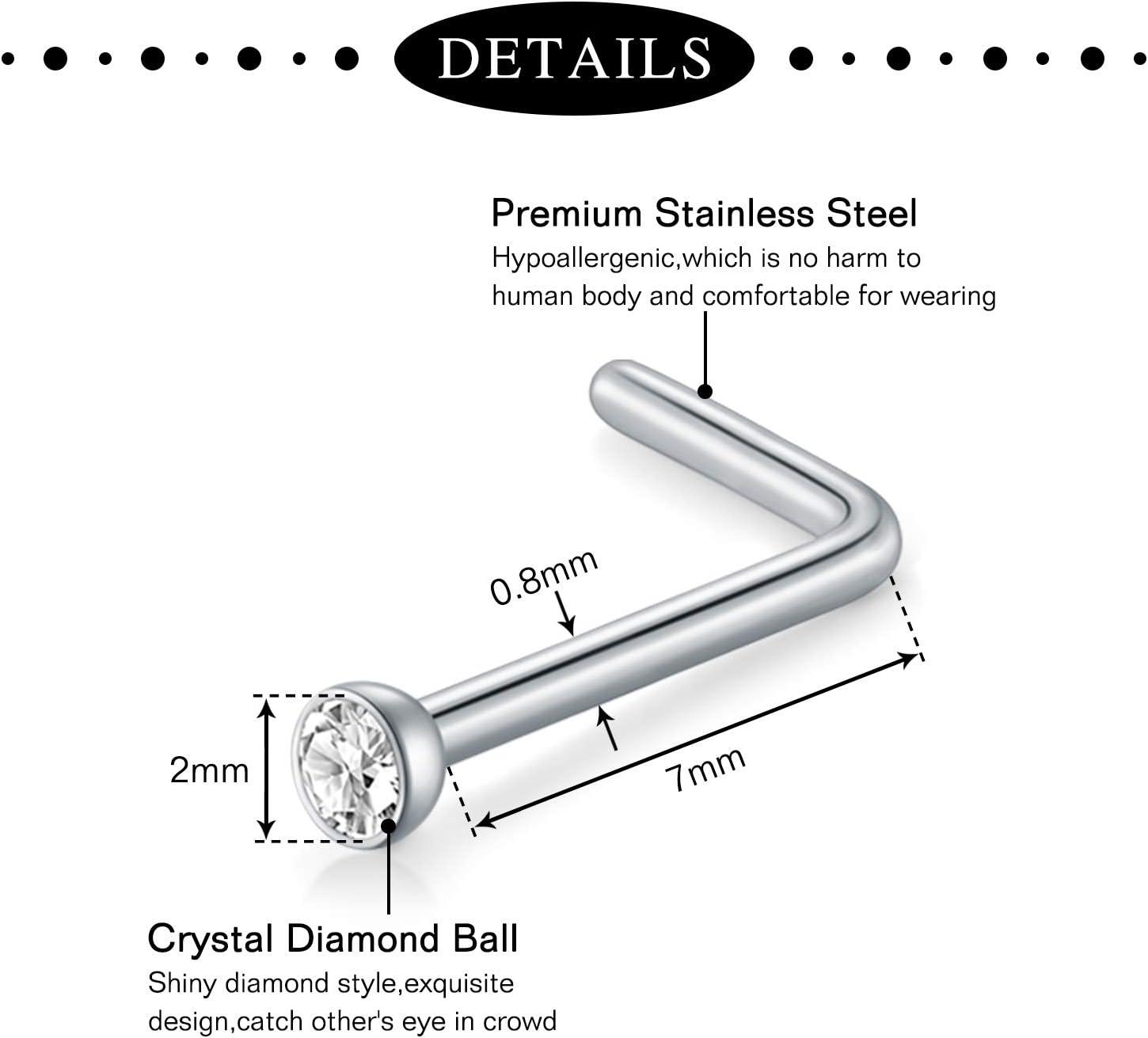 Mayhoop 20g Nose Rings Hoops And Studs For Women Men – Hypoallergenic 316L Surgical Stainless Steel L Shape Nose Screw Bone Silver Rose Gold Black Rainbow Pack 28Pcs(2#Silver)