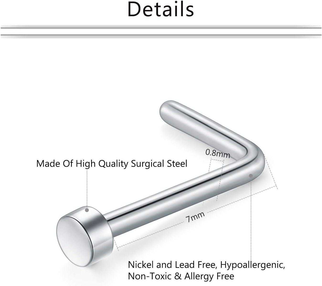 Mayhoop 20g Nose Rings Hoops And Studs For Women Men – Hypoallergenic 316L Surgical Stainless Steel L Shape Nose Screw Bone Silver Rose Gold Black Rainbow Pack 28Pcs(L-shaped(Silver+Rose gold))