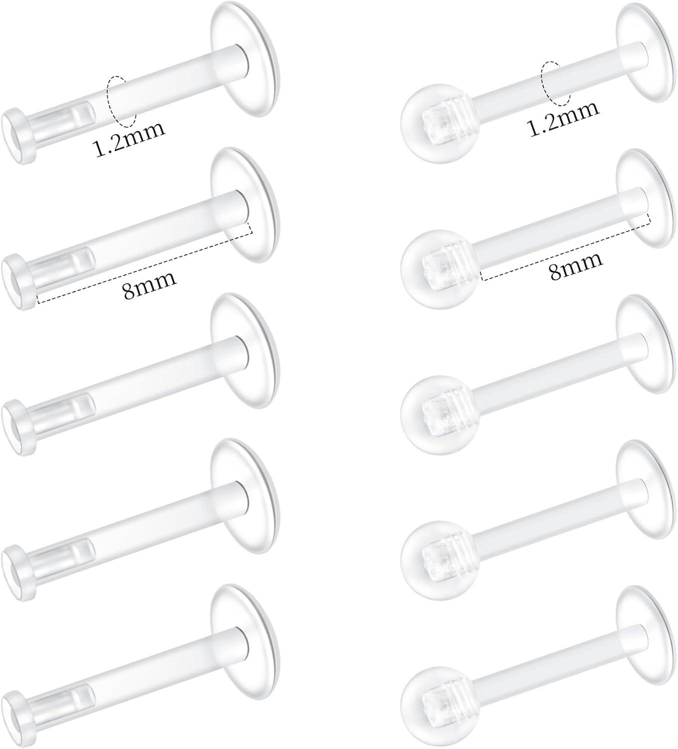 Mayhoop Clear Earrings for Work,Sports – Surgery Bioflex Labret Helix Cartilage Tragus Lip Earring Clear Piercing Retainers Plastic Jewelry For Women Men 6mm 8mm 10mm 12mm(16G 8mm)