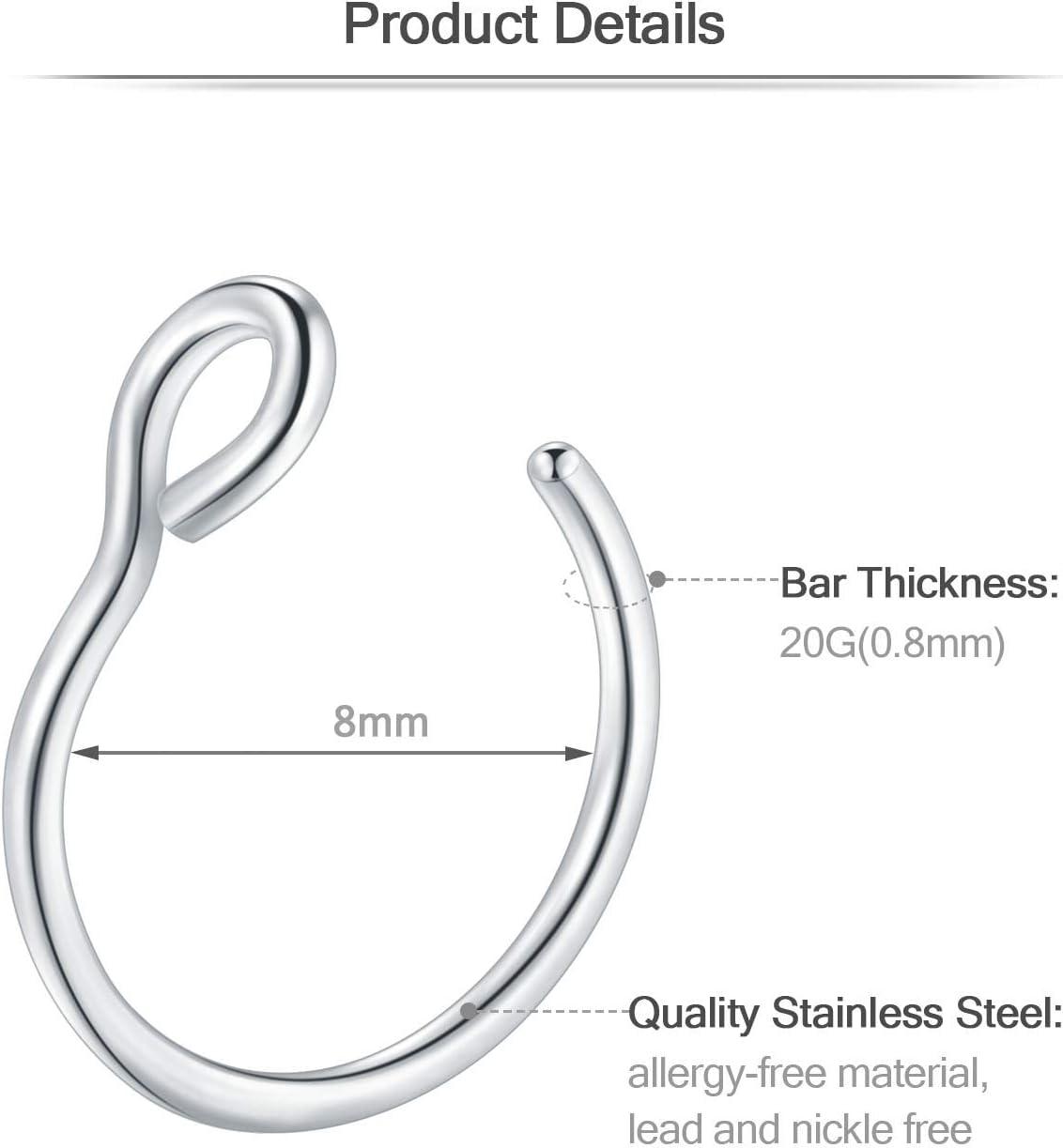 Mayhoop Faux Nose Ring Hoop Double Piercing for Women & Men – Silver, Rose Gold, Black(12pcs-Mix A)